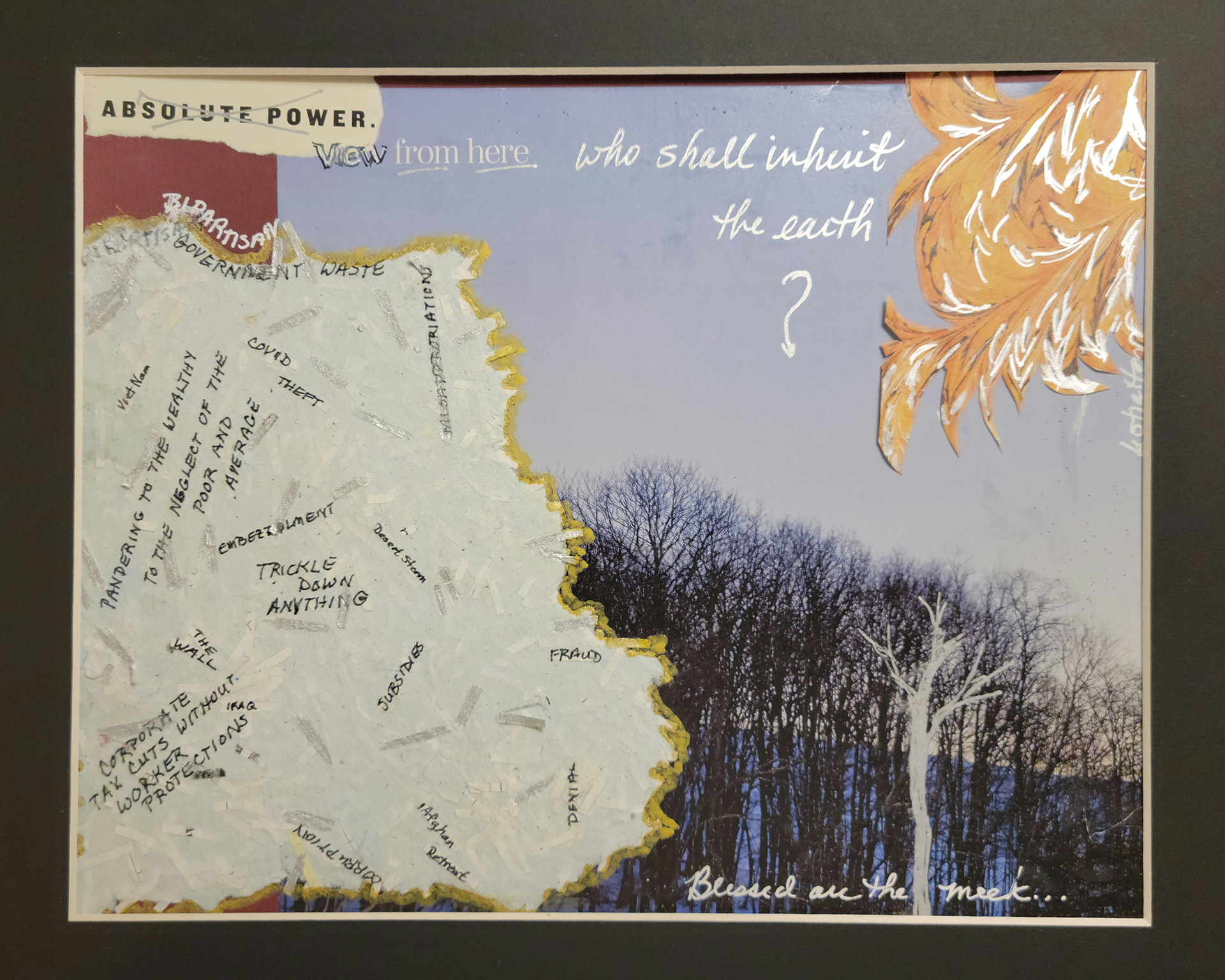 Encaustic and mixed media allow me to express the chaotic and deeply layered nature of life. Sometimes I even venture into politics.